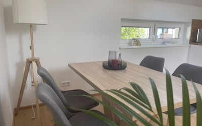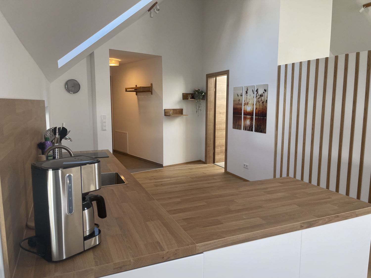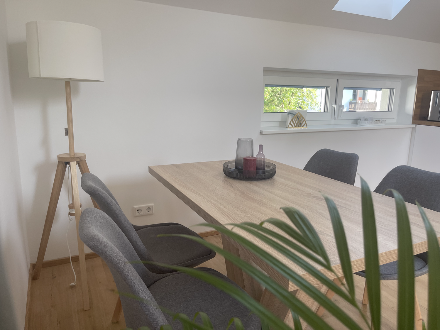 In der Küche findet ihr alles, was es zum Kochen und Essen benötigt: Herd, Backrohr, Kühlschrank, Geschirrspüler, Kochtöpfe, Geschirr, Besteck und Gläser sind vorhanden. Zum Essen lädt ein Esstisch mit Platz für 4 Personen ein. Dieser steht direkt an die Küche angeschlossen mit Blick auf den großen Balkon mit weiteren Sitzgelegenheiten.