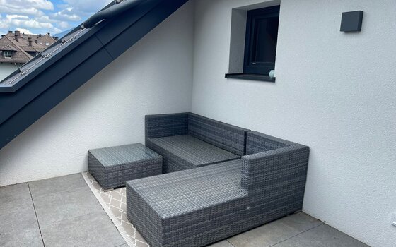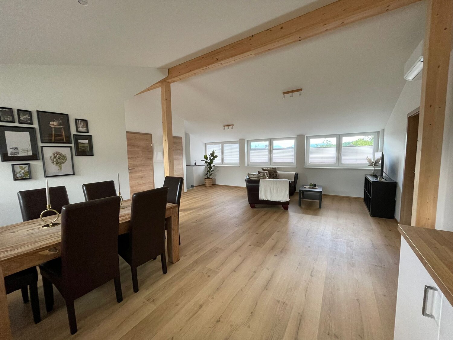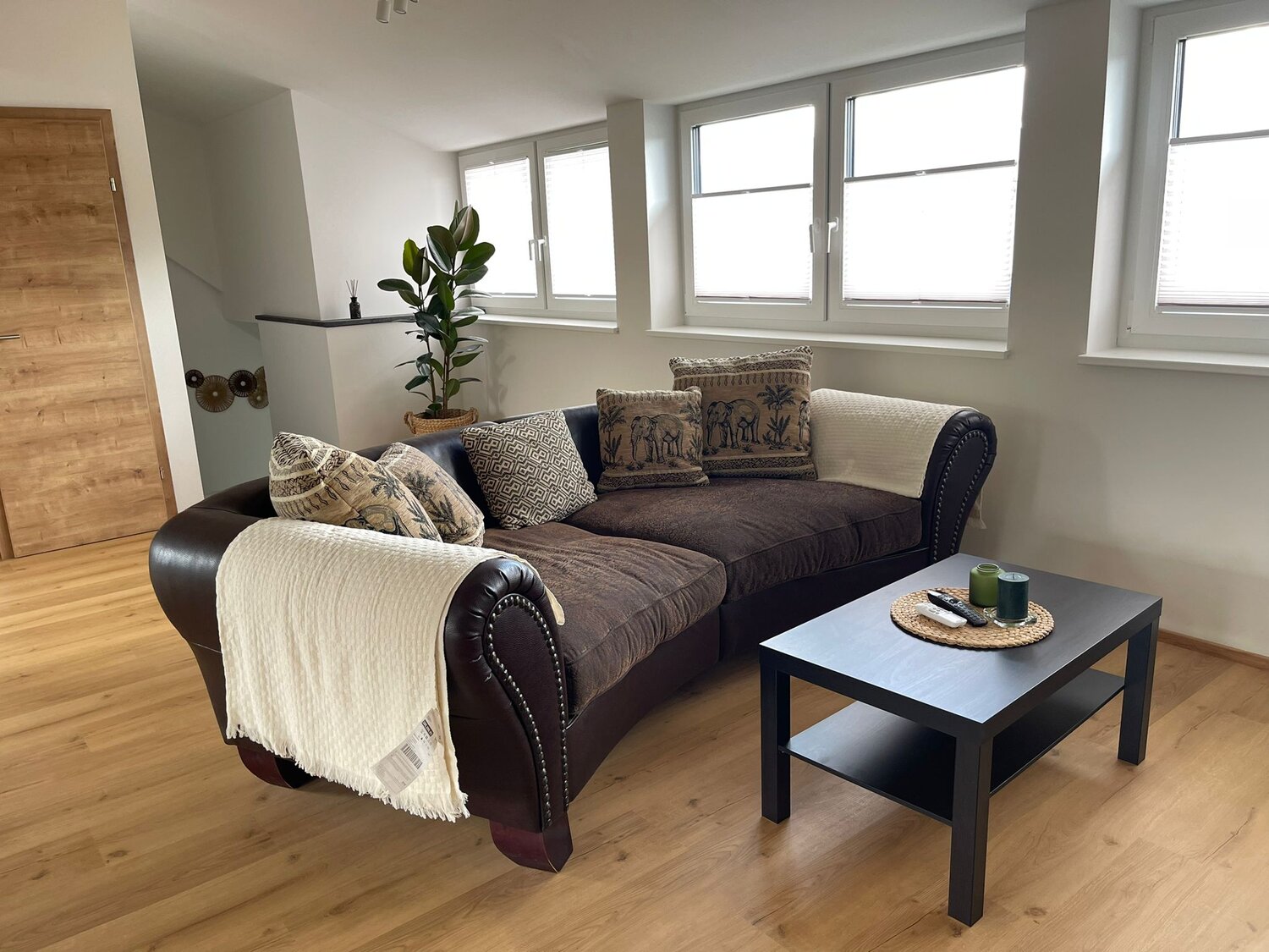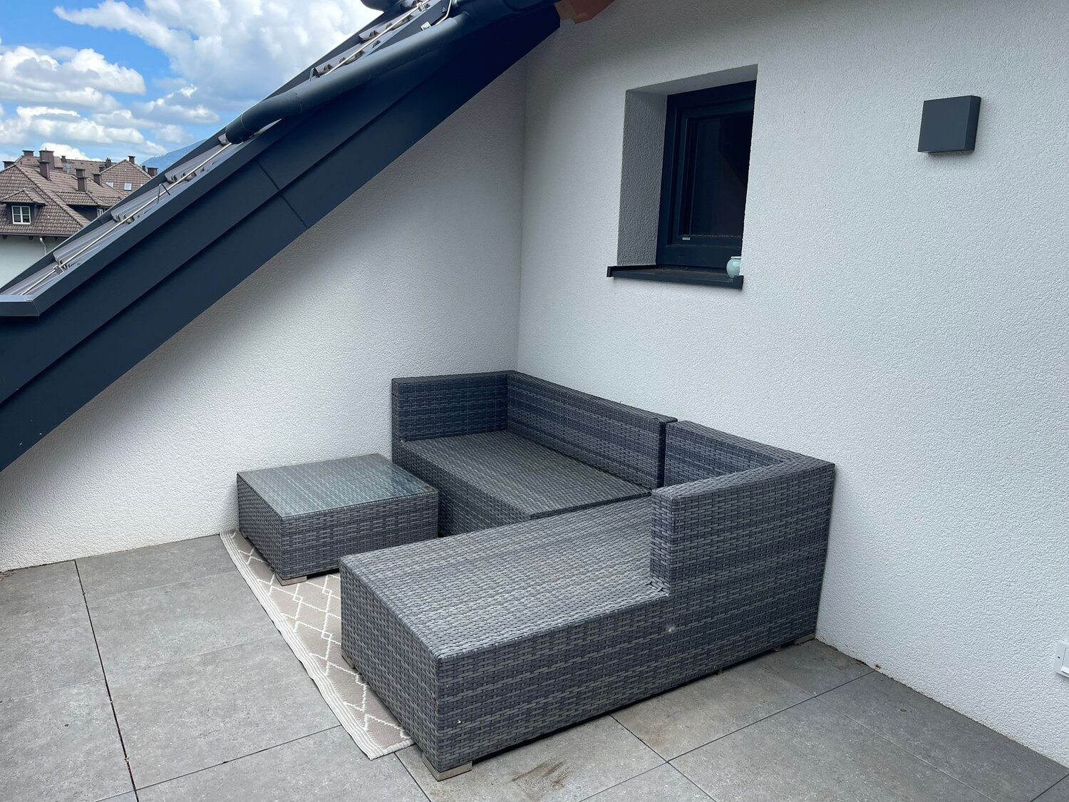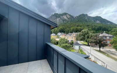 Die großzügige Wohnküche im Loft-Stil bietet euch alles, was ihr zum Kochen, Essen und Beisammensein benötigt. Highlight ist mit Sicherheit die große Terrasse mit Blick auf den Untersberg. Für kühlere Abende bietet sich die gemütliche Couch im Wohnbereich an. Ein Smart-TV sorgt für Unterhaltung.
