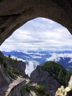 Von oben habt ihr einen atemberaubenden 360-Grad-Panorama-Ausblick: über das Rosittental und das Gebirgsjäger-Denkmal bis ins Salzkammergut und die Hohen Tauern sowie bis ins Tennen- und Hagengebirge.